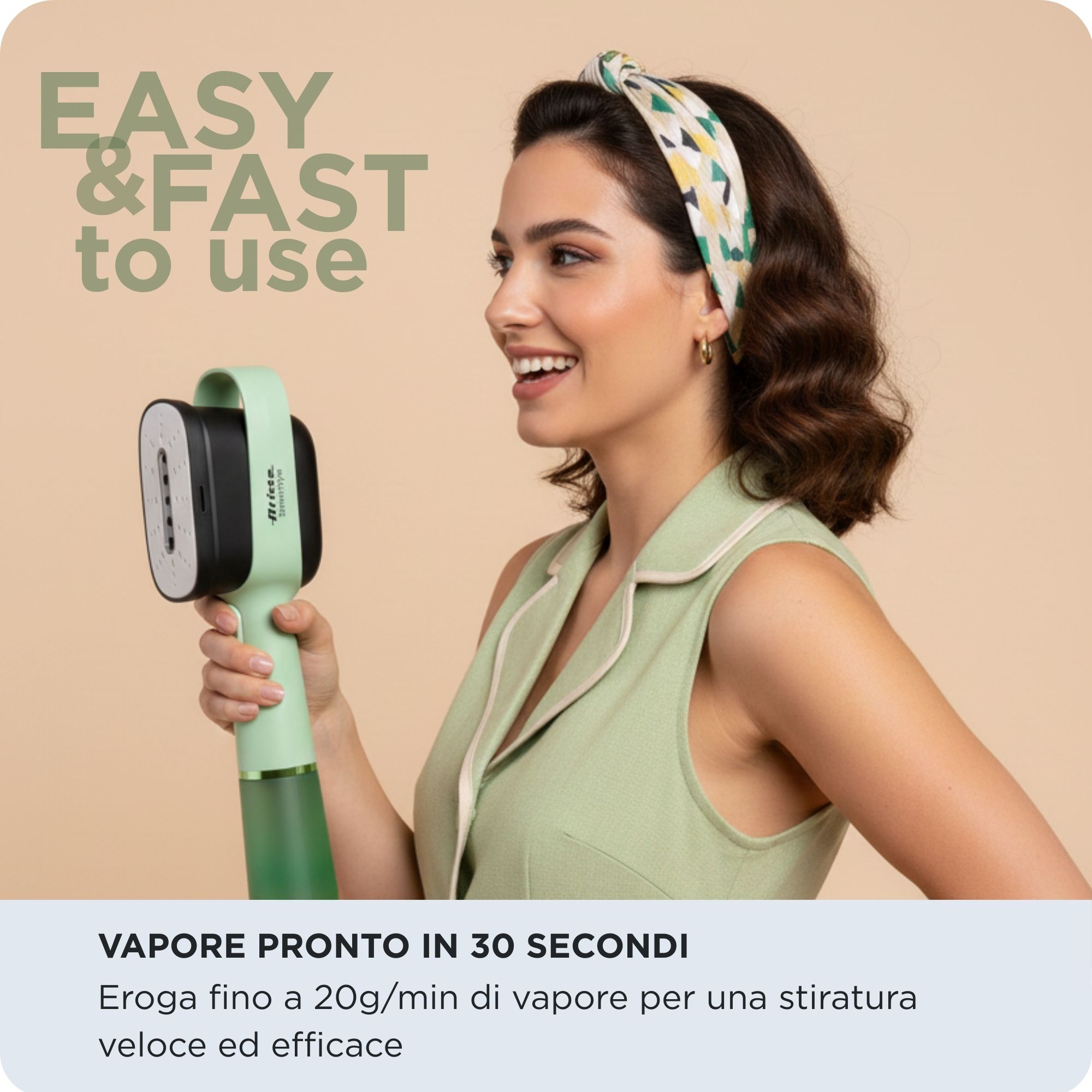 E’ pronta per l'uso in soli 30 secondi! I suoi 1200W di potenza erogano fino a 20g/min di vapore, garantendo ritocchi veloci e un'eliminazione delle pieghe senza sforzo. Adatta anche a diversi tipi di tessuti.
