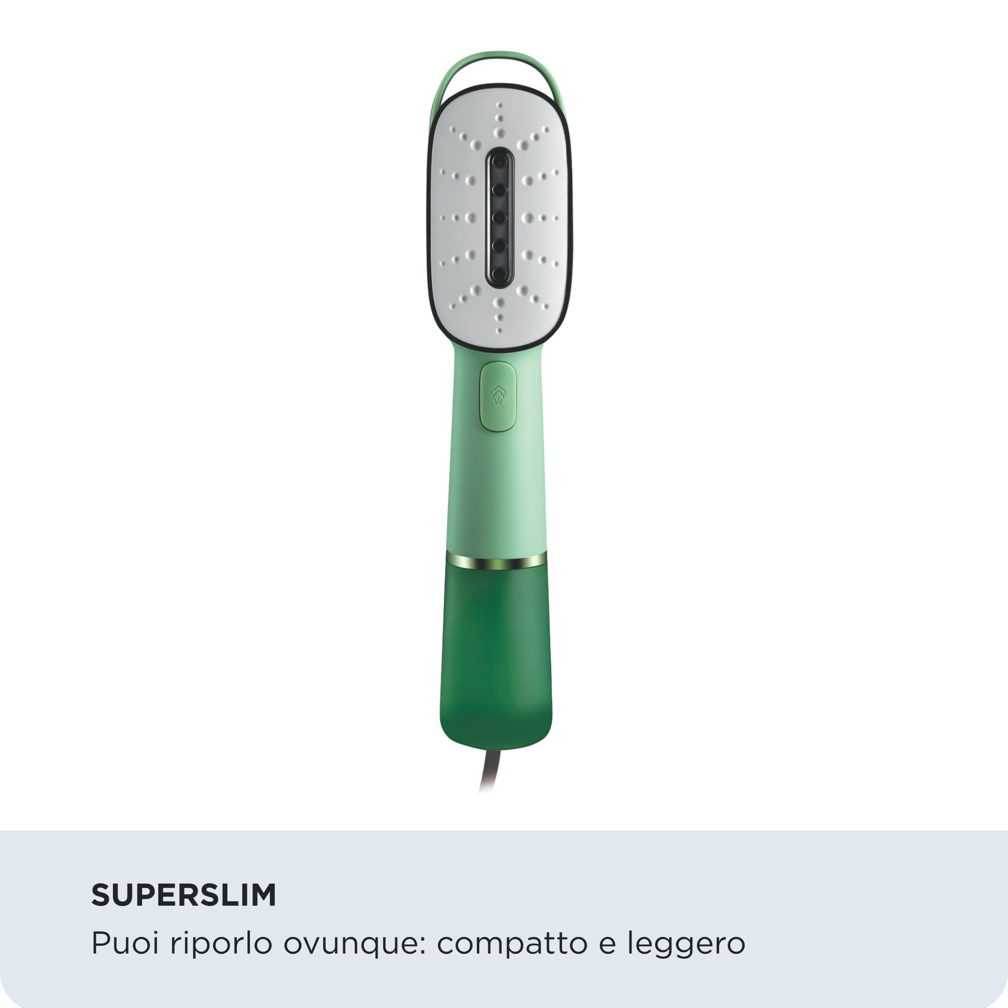 Addio asse da stiro e benvenuto vapore continuo: ideale per i ritocchi sui tessuti, per eliminare le pieghe che si creano dopo un viaggio, per soluzioni pratiche e veloci