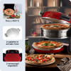 Forno elettrico per 2 pizze con 2 pietre refrattarie di 32 cm di diametro con trattamento antiaderente. 2 termostati separati. 5 livelli di cottura. Temperatura massima 400°. Ideale per cuocere 2 pizze contemporaneamente. Prodotto brevettato.Rosso