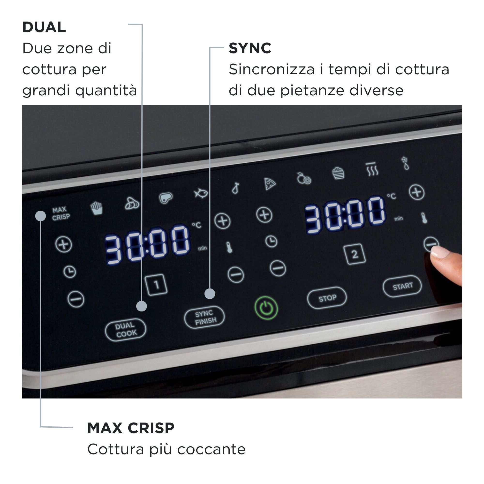 | Funzioni | Cottura sincronizzabile, Max Crisp, Riscaldamento e Disidratazione alimenti |