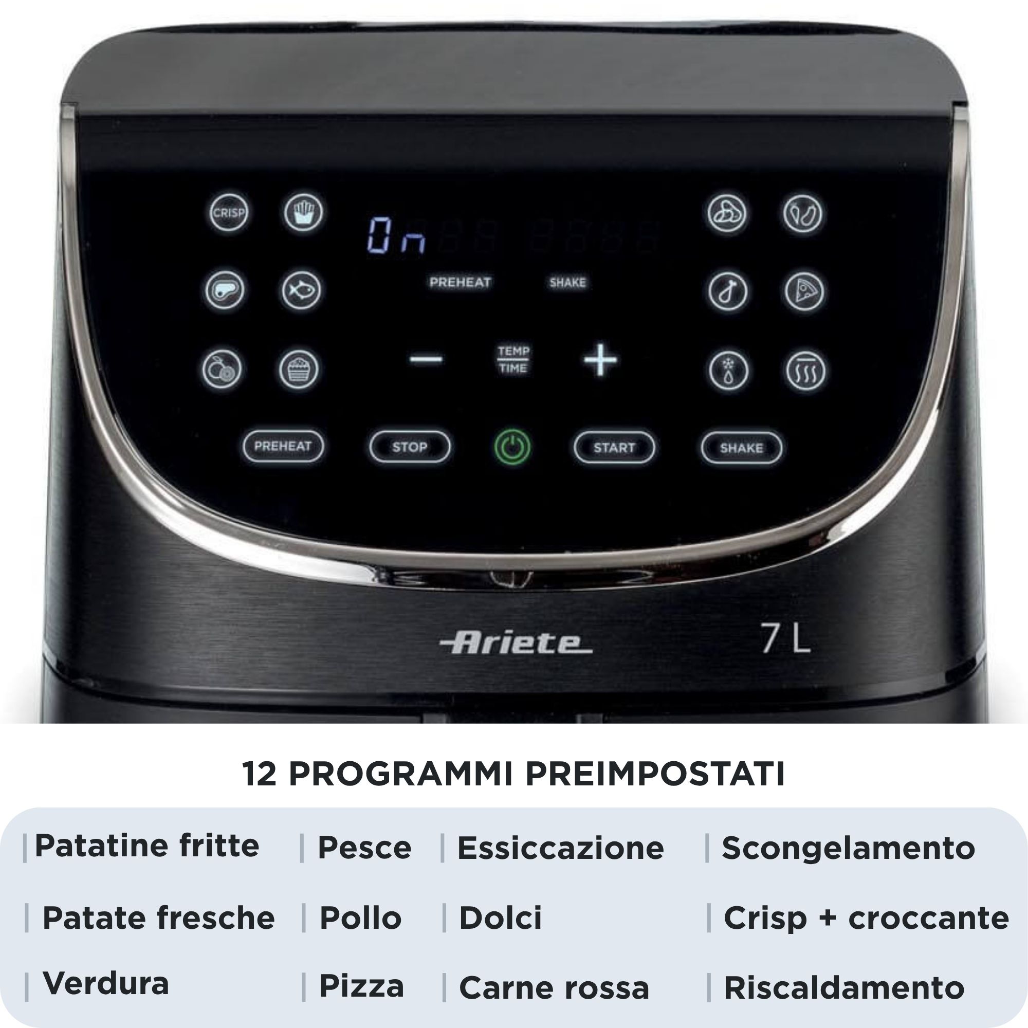 | Funzioni | Max Crisp, Riscaldamento e Segnale Shake |