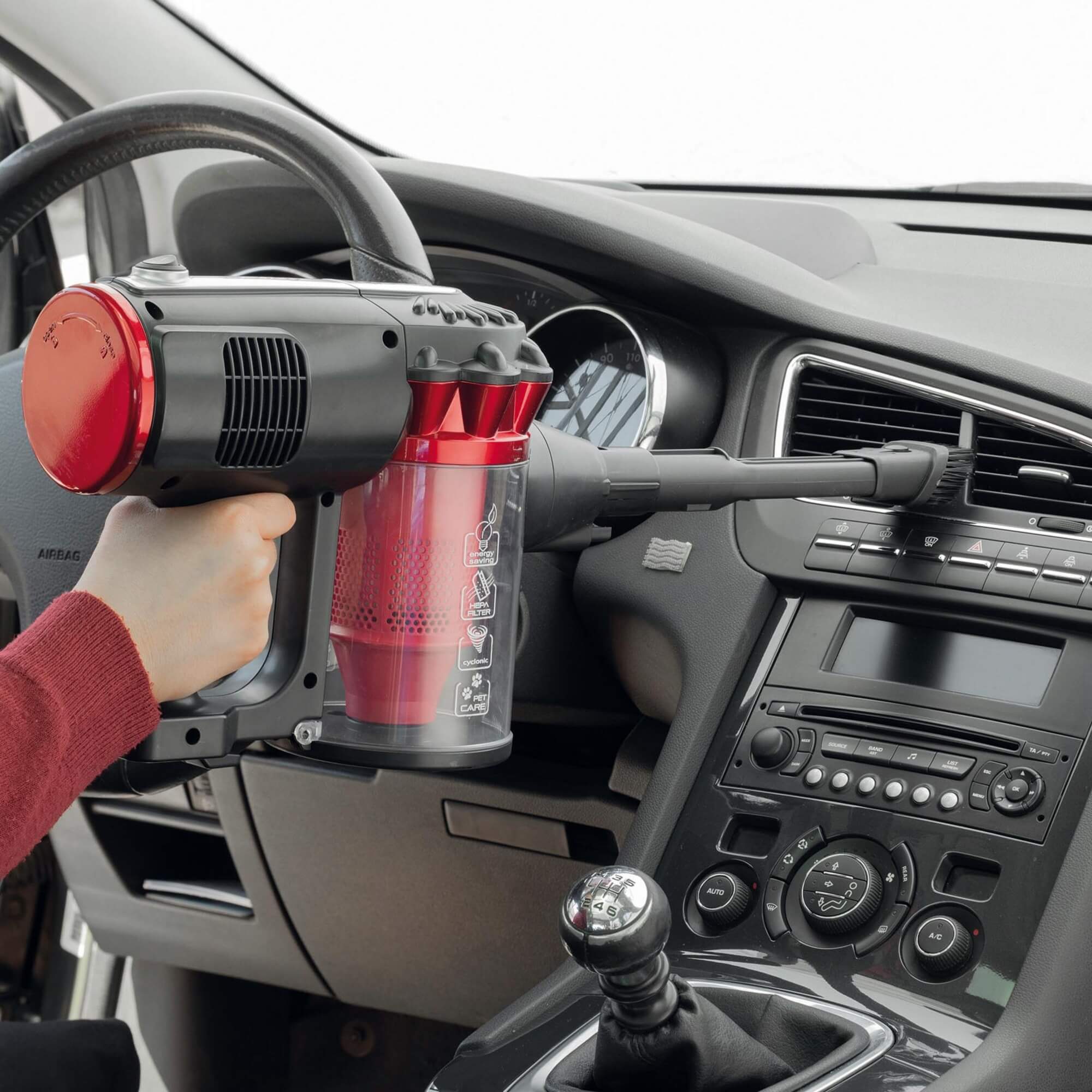 Scopa elettrica con filo. L'aspirabriciole incorporato è ideale per la pulizia degli interni auto.