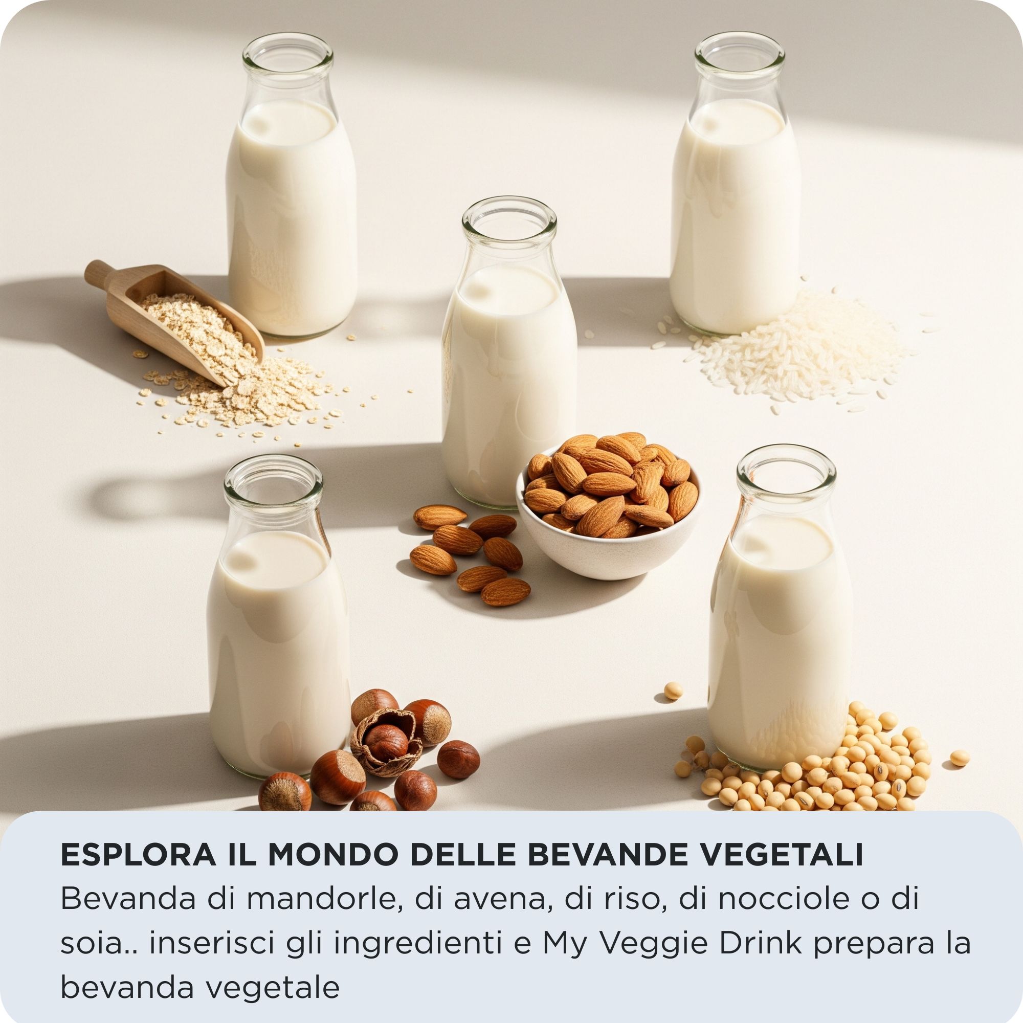 Non dovrai più comprare grandi confezioni per paura di rimanere senza, né gettare via gli avanzi. Prepara solo la quantità di bevanda vegetale di cui hai bisogno al momento: che sia un bicchiere per la colazione o una caraffa , My Veggie Drink ti permette di produrre la dose perfetta, riducendo drasticamente gli scarti alimentari e usando solo i tuoi ingredienti preferiti.