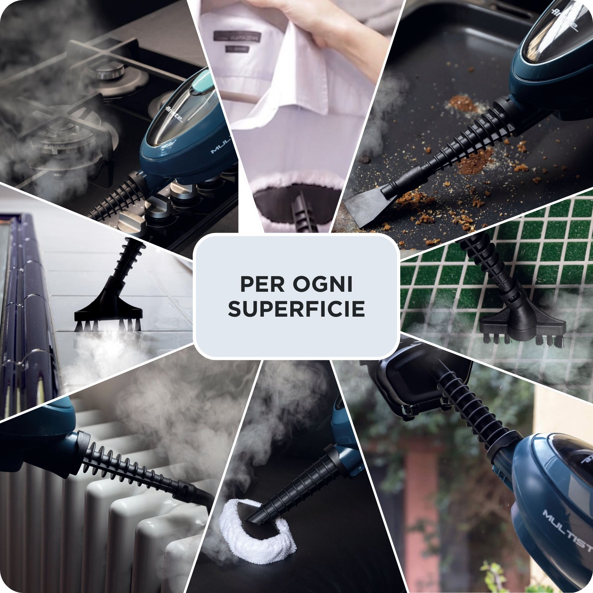 Il vapore scioglie qualsiasi traccia di unto e grassi, rendendo il piano cottura lucido e splendente!