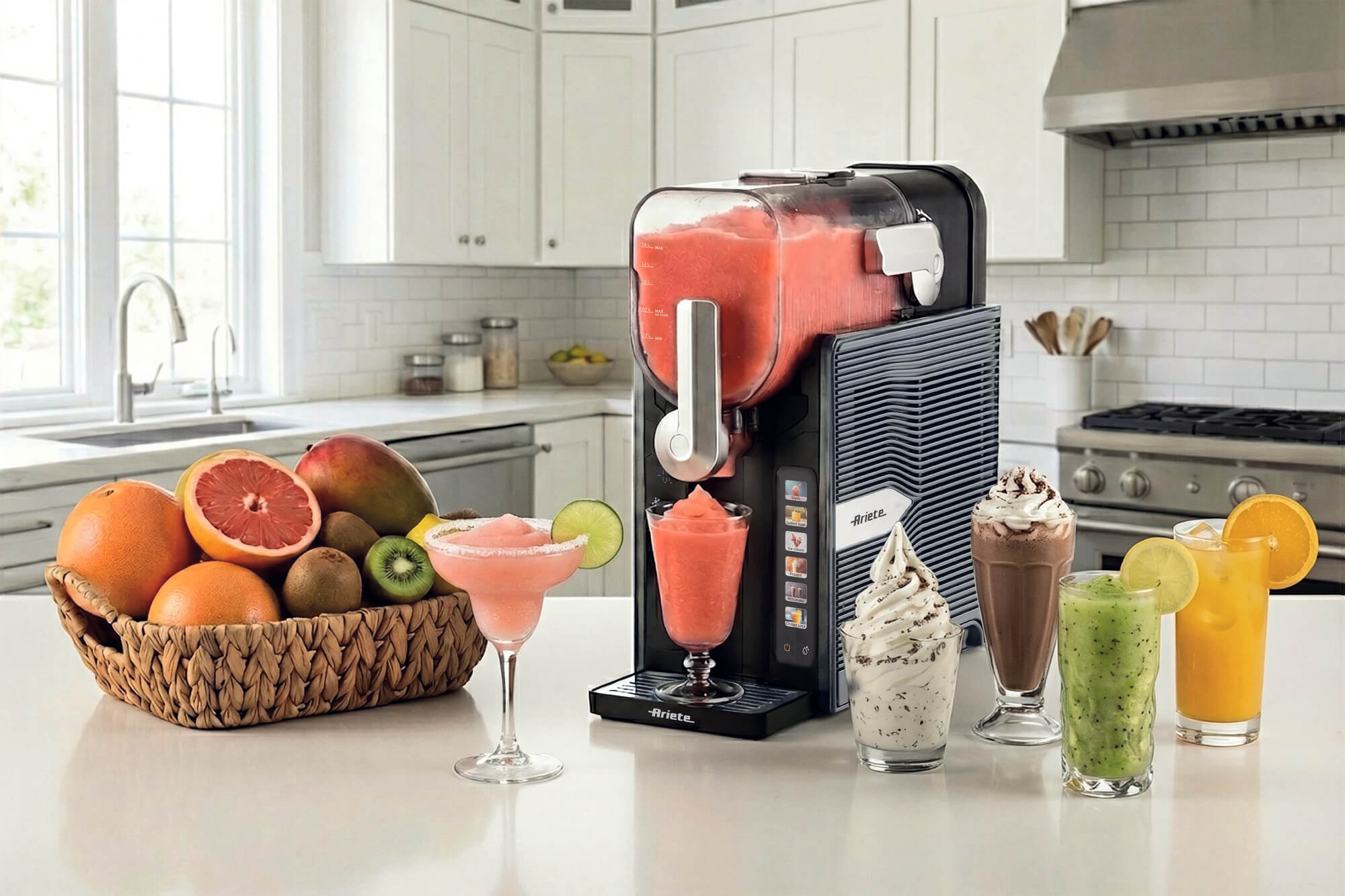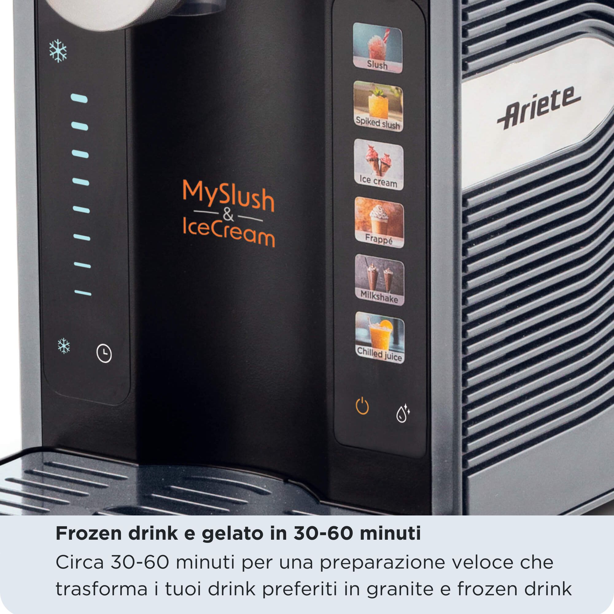 La tua bevanda ghiacciata fatta in casa: granite, gelati, frozen drink, frappè, milkshake, succhi freddi. Fino a 1,6L di granita e 700ml di gelato. Tempi di preparazione 30-60 minuti. Senza bisogno di ghiaccio.