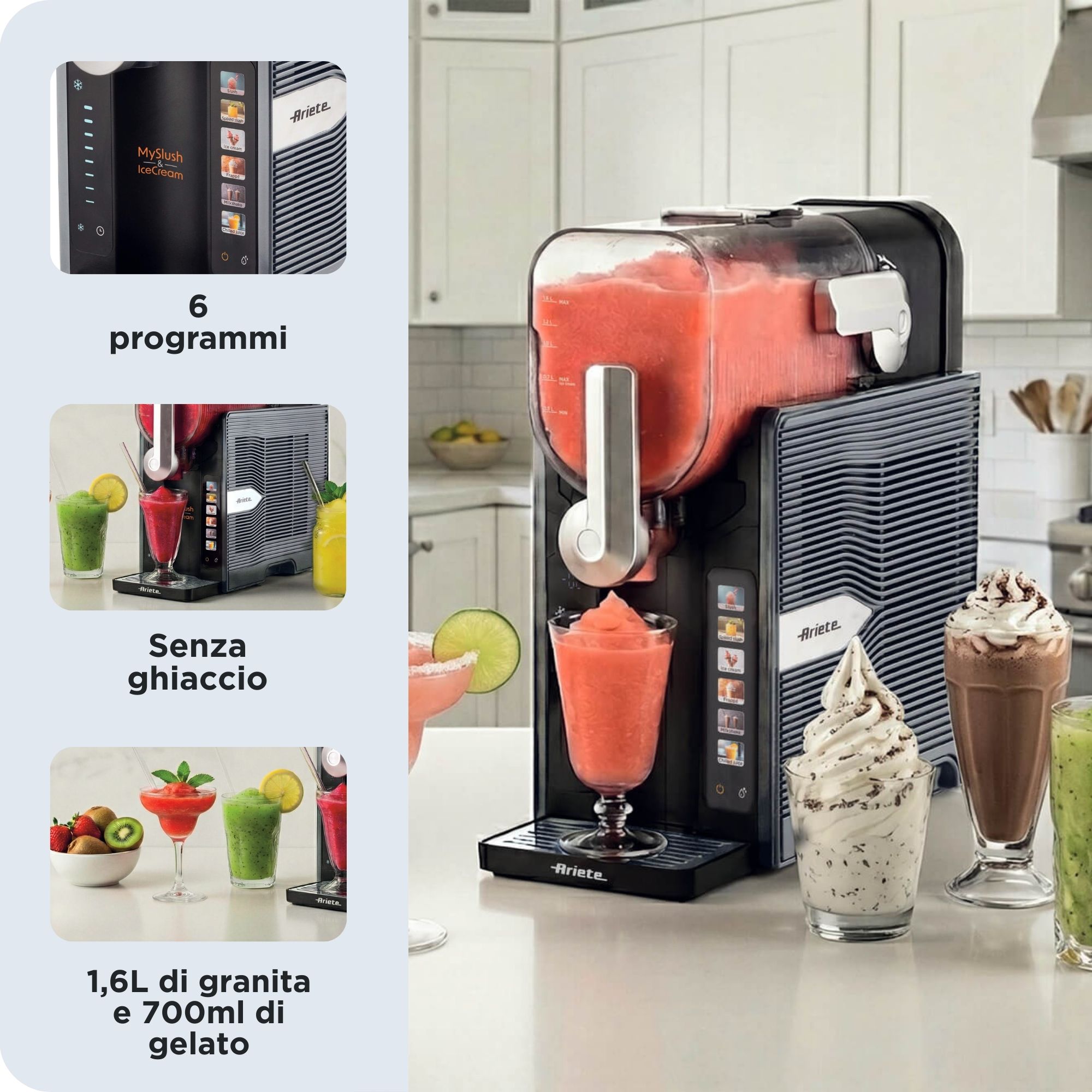 | Capacità serbatoio | 2,6L (fino a 1,6L di granita e 700ml di gelato) |
