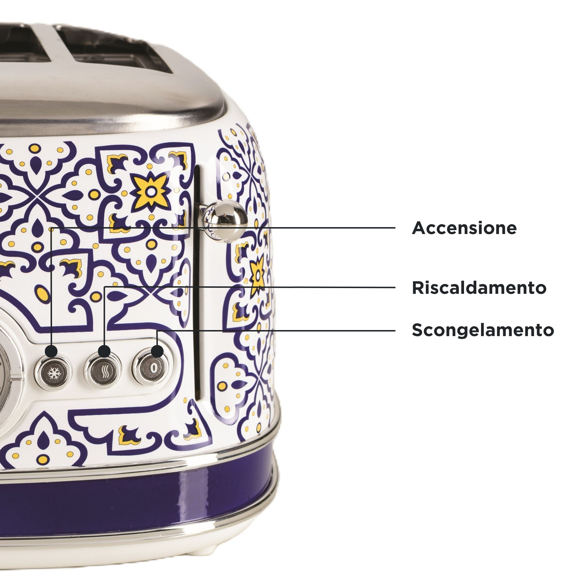 Con le funzioni riscaldamento e scongelamento, puoi non solo tostare il pane, ma anche semplicemente riscaldarlo o scongelarlo con il defrost, inserendo direttamente la fetta congelata all’interno del tostapane.