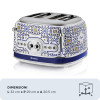 4 slot con comandi separati 2x2. 6 livelli di doratura. Espulsione automatica delle fette. Corpo in metallo. Tosta, riscalda e scongela. Senza pinze.